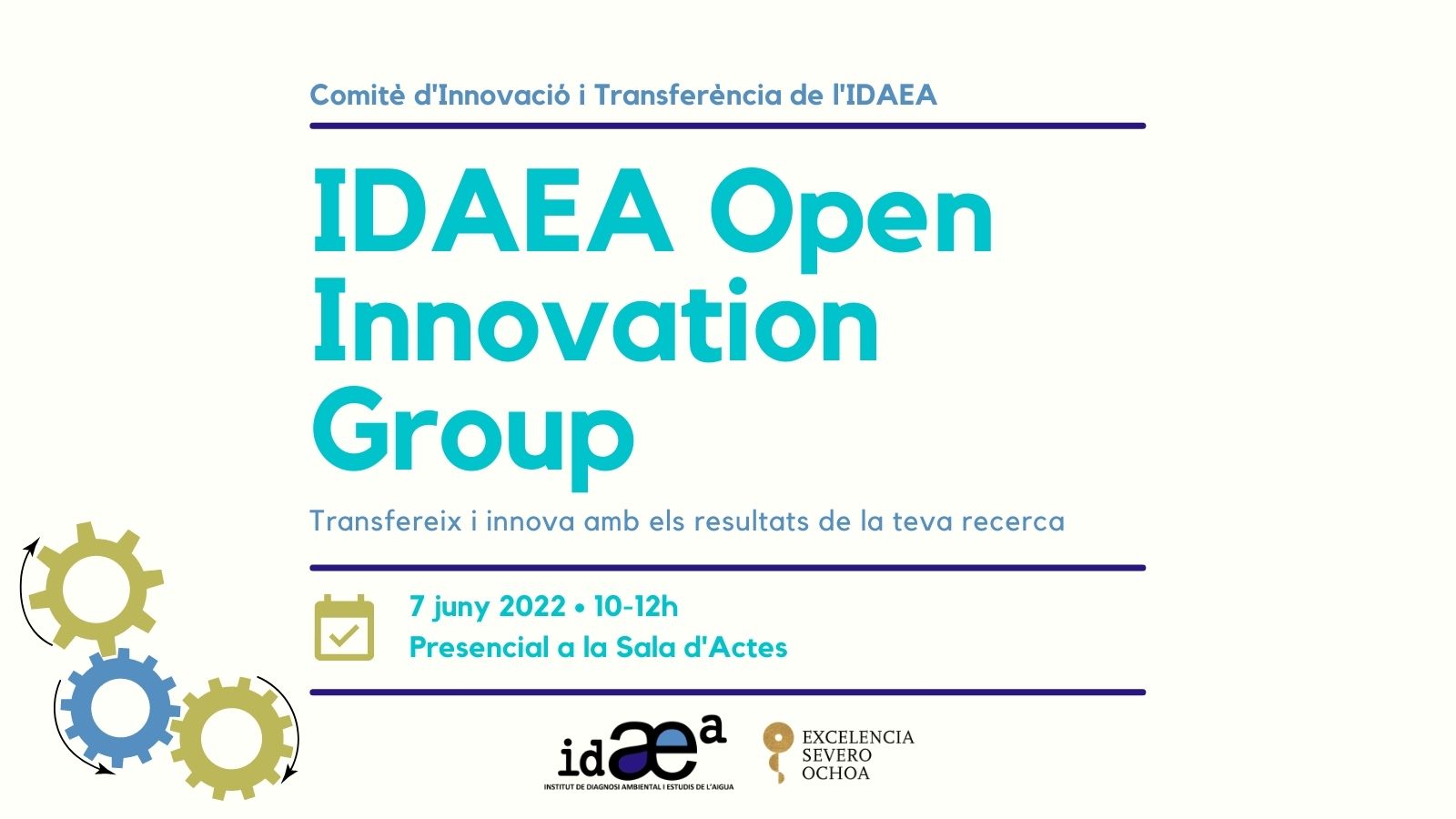 El Comitè de Transferència i Innovació de l'IDAEA organitza aquesta primera jornada per compartir experiències, aprendre i identificar necessitats a l'hora de transferir resultats de recerca i innovar. Jornada interna per al personal investigador. Idioma: Català/Castellà